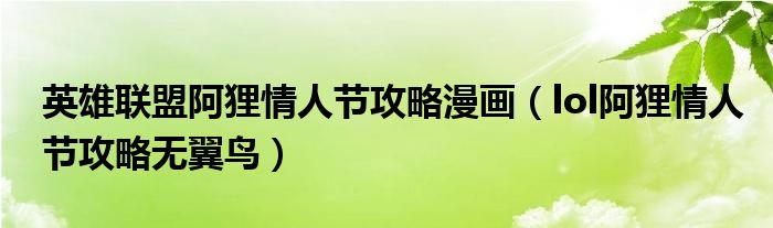 关于英雄联盟阿狸情人节攻略漫画,lol阿狸情人节攻略无翼鸟这个很多人还不知道,今天菲菲来为大家解答以上的问题,现在让我们一起来看看吧!