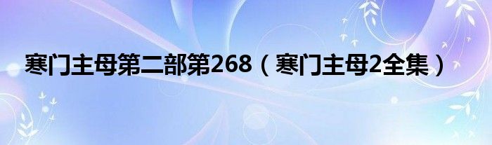 关于寒门主母第二部第268,寒门主母2全集这个很多人还不知道,今天菲菲来为大家解答以上的问题,现在让我们一起来看看吧!