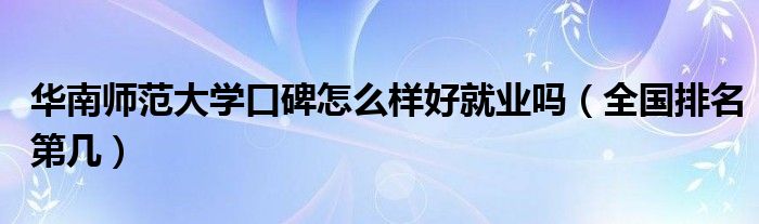 大家好,乐儿来为大家解答以下问题,华南师范大学口碑怎么样好就业吗,全国排名第几很多人还不知道,现在让我们一起来看看吧!