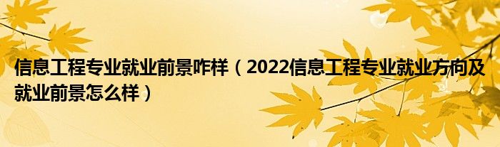 大家好,乐儿来为大家解答以下问题,信息工程专业就业前景咋样,2022信息工程专业就业方向及就业前景怎么样很多人还不知道,现在让我们一起来看看吧!