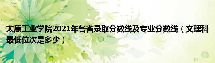 大家好,乐儿来为大家解答以下问题,太原工业学院2021年各省录取分数线及专业分数线,文理科最低位次是多少很多人还不知道,现在让我们一起来看看吧!