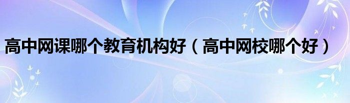 高中网课哪个教育机构好(高中网校哪个好)