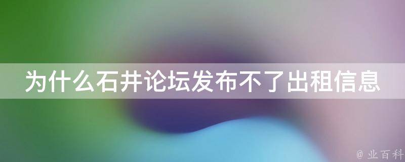 1、版块限制:石井论坛对不同的信息类型进行了分类,并设置了相应的版块或专区。如果要发布的出租信息与现有版块的主题不符合,可能会被限制发布。