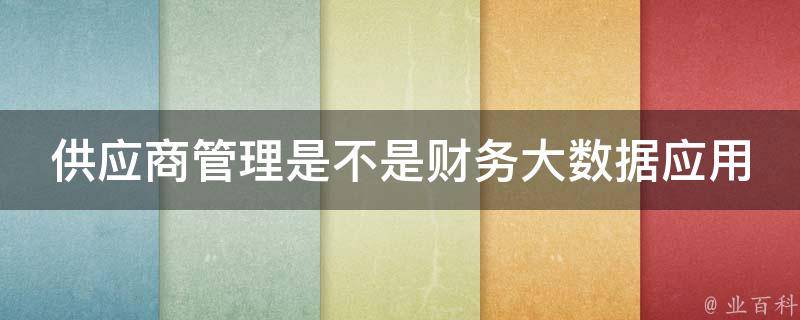 供应商管理不是财务大数据应用,它们是两个不同的概念。供应商管理是指组织管理和监督与其合作的供应商的活动,旨在确保供应链的高效运作和良好的供应商关系。供应商管理涉及供应商选择、评估、采购合同管理、供应商绩效评价等方面,以确保供应商的质量、可靠性和合规性。而财务大数据应用是指利用大数据技术和分析方法来处理和分析财务数据,以获得对财务状况、业务绩效和风险等方面的深入洞察。财务大数据应用可以涵盖财务报告、预测、风险管理、成本控制、经营绩效分析等领域。