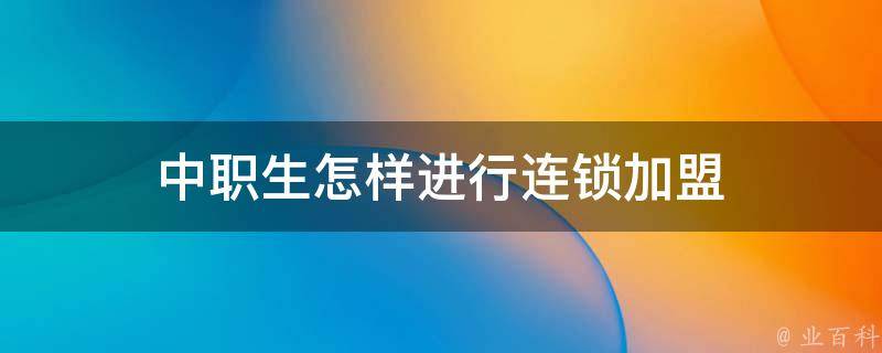 中职生怎样进行连锁加盟