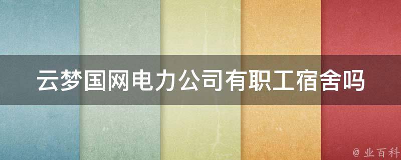 云梦国网电力公司有职工宿舍。国网电力公司的分公司提供员工住宿,通常是每两个人一个房间,实行公寓化管理,同时设有食堂等生活基本设施。此外,该分公司还提供免费的洗衣服务,可以帮助员工节省时间和金钱。