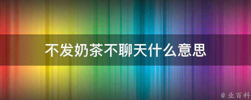 不发奶茶不聊天表示对方不愿意给予或分享一些东西或信息时的戏谑和调侃。它的意思是如果对方不提供奶茶(或其他某个特定的东西),就不愿意进行聊天或提供其他对方所需要的帮助。这句话的含义可能因上下文而有所变化,但通常是以幽默的方式表达拒绝或戏谑。