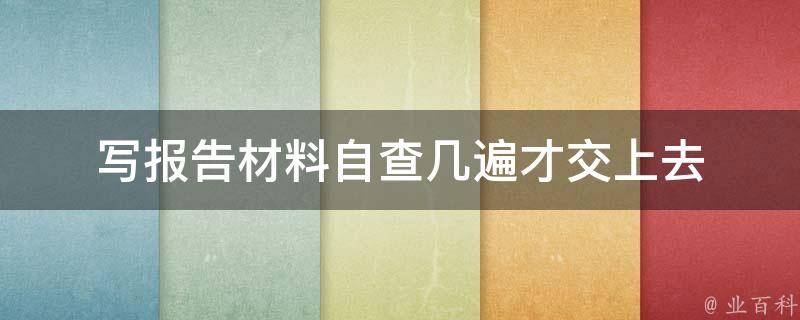 视情况而定。自查报告材料的次数没有一个固定的准确答案,它可能因个人偏好和时间限制而异。在完成报告后,可以进行一次初步的自我审查,检查语法、拼写、标点符号和句子结构,确保没有明显的错误或不连贯之处。过一段时间再重新审查报告,这可以帮助你以新的眼光看待材料,发现之前可能忽视的问题,检查事实准确性、逻辑连贯性和文本的整体结构。