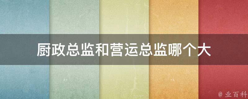 营运总监大,因为营运总监负责整个组织或企业的运营管理,包括制定运营策略、规划和管理资源,确保业务顺利运行并实现预期的目标。而厨政总监主要负责管理和监督餐饮业务方面的运营,特别是与厨房和食品相关的事务,例如菜单规划、食材采购、食品质量控制等。