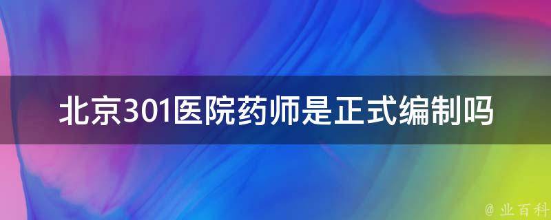 北京301医院药师是正式编制,他们是专门从事药物治疗和药学服务的专业人员,负责药品的合理使用、配药、药物咨询和药物治疗方案制定等工作。医院会根据药学服务的需求,设立相应的编制职位,将药师纳入医院的正式编制中。
