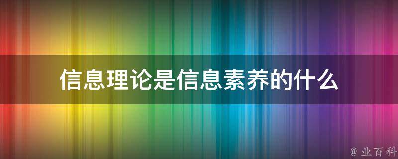 信息理论是信息素养的什么