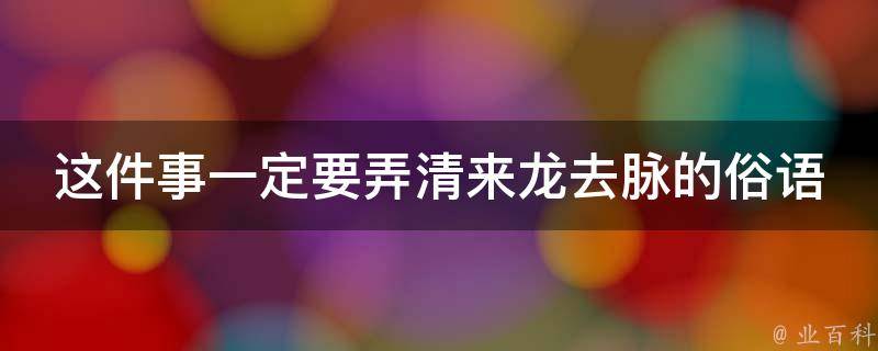 这件事一定要弄清来龙去脉的俗语