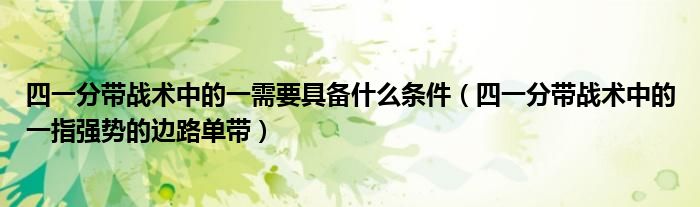 关于四一分带战术中的一需要具备什么条件,四一分带战术中的一指强势的边路单带这个很多人还不知道,今天菲菲来为大家解答以上的问题,现在让我们一起来看看吧!