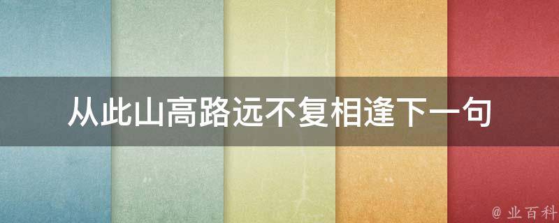 从此山高路远不复相逢的下一句是:江湖远,各自东西南北游。这句话的意思是:从此之后,因为山高路远,我们再也无法相遇了。江湖遥远,我们各自在东、西、南、北各地漂泊闯荡。这句话表达了离别之后人们各自奔波追寻自己的人生道路,无法再次相聚的遗憾和辛酸之情。江湖常常用来形容世间的纷乱与变迁,暗示了人生的起伏和离散。