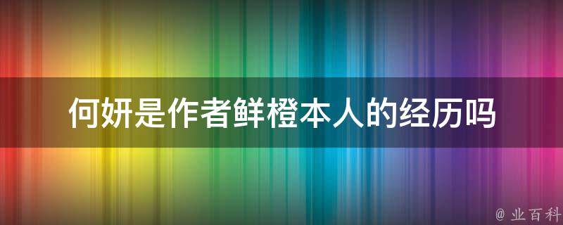何妍不是作者鲜橙本人的经历。何妍是鲜橙手游《全职法师》小说的主要角色之一。在小说中,她是一位金发美女,拥有极高的魔法天赋。她在学院期间结识了叶修等一批天才学生,并经历了许多曲折的故事,成为了一名优秀的法师,与鲜橙本人的经历无关。