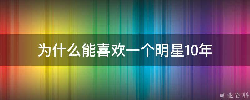 能喜欢一个明星10年可能是因为这个明星的性格非常值得称赞,或者是做出的一些事情让粉丝们非常有好感度,也有可能是从他身上能够学习到很多东西。明星作为社会公众人物,肩负着言传身教、以身作则的社会自身责任。明星本身代表着其巨大的影响力,如果其影响力能够得到正确利用,那么其所能发挥的作用不能忽视。