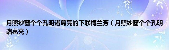 关于月照纱窗个个孔明诸葛亮的下联梅兰芳,月照纱窗个个孔明诸葛亮这个很多人还不知道,今天菲菲来为大家解答以上的问题,现在让我们一起来看看吧!
