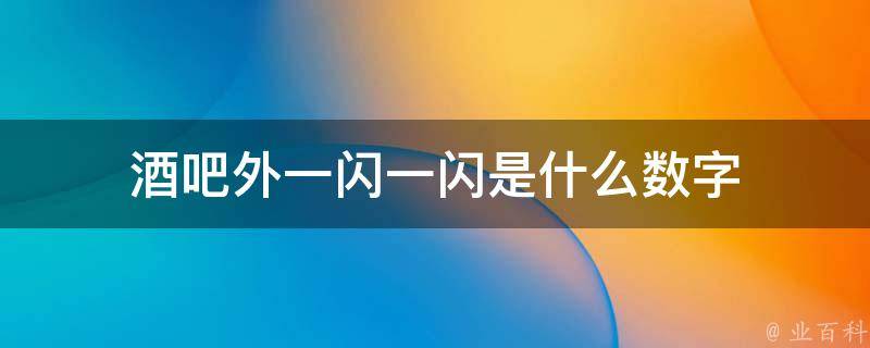 酒吧外一闪一闪是数字6,因为闪字是三的谐音,3加3是数字6。数字可以表示具体的数值,用于计数、测量或表示数量。例如,1、2、3是自然数的数字表示。数字可以作为一种符号系统,用于表示数学概念和进行数学运算。在这种情况下,数字被用于构建不同的数值和数学表达式。