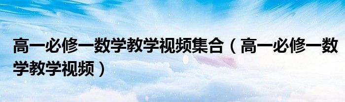 关于高一必修一数学教学视频集合,高一必修一数学教学视频这个很多人还不知道,今天菲菲来为大家解答以上的问题,现在让我们一起来看看吧!