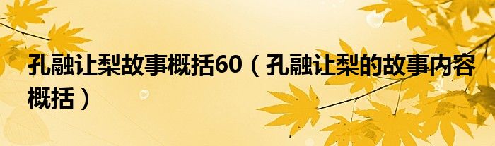 关于孔融让梨故事概括60,孔融让梨的故事内容概括这个很多人还不知道,今天菲菲来为大家解答以上的问题,现在让我们一起来看看吧!