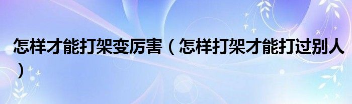 大家好,小联来为大家解答以上的问题。怎样才能打架变厉害,怎样打架才能打过别人这个很多人还不知道,现在让我们一起来看看吧!