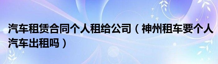 关于汽车租赁合同个人租给公司,神州租车要个人汽车出租吗这个很多人还不知道,今天菲菲来为大家解答以上的问题,现在让我们一起来看看吧!