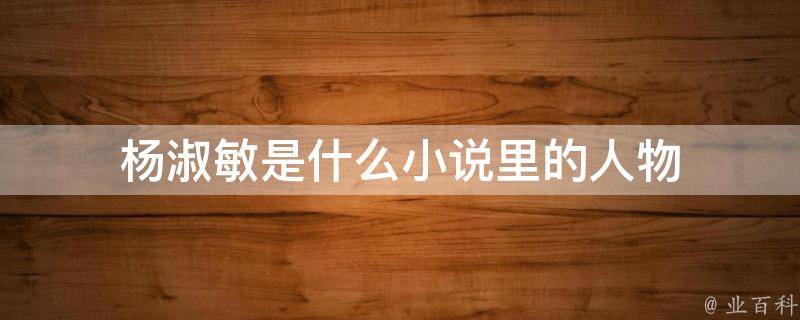 杨淑敏是小说《曹贼?我真不是》里的人物。《曹贼?我真不是》的主角是秦云、杨淑敏,是一本穿越重生类型的小说。主角秦云要在这个世界中跟随系统拯救有困难的人,杨淑敏就是他的第一个拯救对象。杨淑敏是秦云的老师。