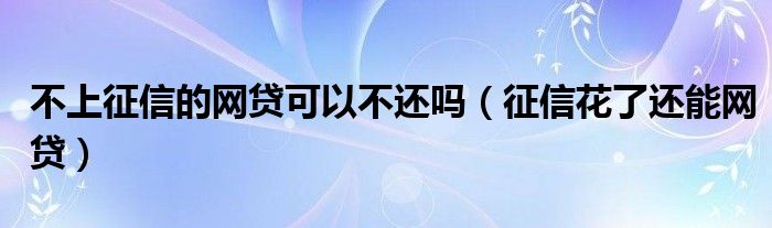 关于不上征信的网贷可以不还吗,征信花了还能网贷这个很多人还不知道,今天菲菲来为大家解答以上的问题,现在让我们一起来看看吧!