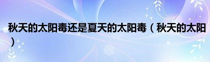 大家好,小联来为大家解答以上的问题。秋天的太阳毒还是夏天的太阳毒,秋天的太阳这个很多人还不知道,现在让我们一起来看看吧!