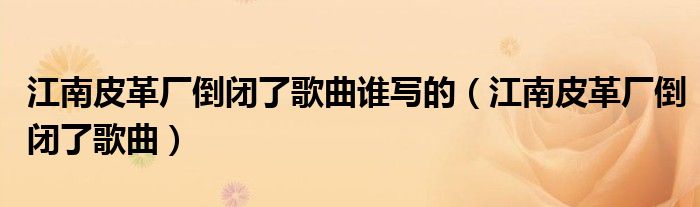 江南皮革厂倒闭了歌曲谁写的(江南皮革厂倒闭了歌曲)
