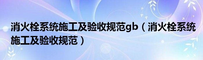 关于消火栓系统施工及验收规范gb,消火栓系统施工及验收规范这个很多人还不知道,今天菲菲来为大家解答以上的问题,现在让我们一起来看看吧!