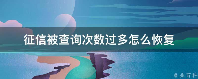 3、等待:一般来说,大部分的银行等信贷机构重点看的是最近六个月以内的征信查询次数,如果查询次数太多,近期要办理贷款或者信用卡的话,建议等一等,随着时间的推移,会慢慢恢复信用的。