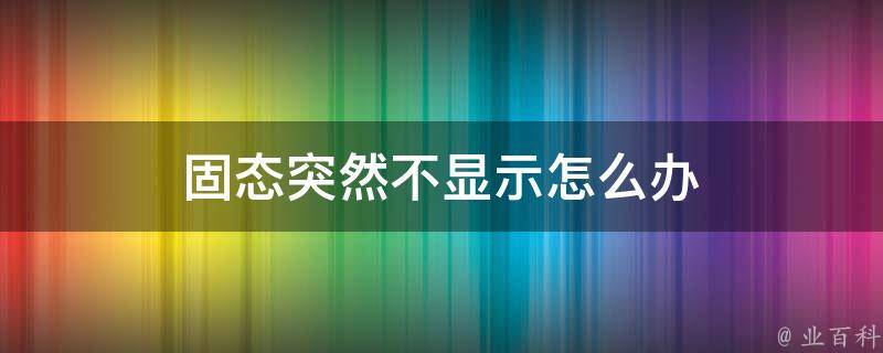 1、连接问题:检查固态硬盘的连接是否稳定,连接线是否松动或不良。可以将硬盘重新插拔一下,确保连接稳定。