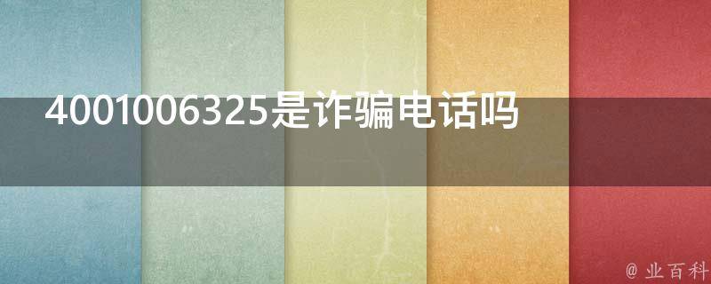 4001006325是诈骗电话,建议不要接听。如果有疑问,可以拨打110或到公安报警。犯罪分子普遍采用异地作案、异地诈骗、异地跨行取款。假如诈骗市民,一般拨打电话时都在外地,或者用外地手机在本地拨打。犯罪分子多来自于同一地域,相互间掩护意识强。