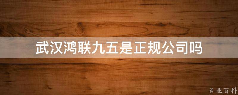 武汉鸿联九五是正规公司,公司属于劳动密集型企业,客服外包的公司。鸿联九五成立于1995年,1997年获得高新技术企业认证,鸿联九五前身为邮电国际旅行社信息网管理中心。鸿联九五的运营团队经验丰富,管理能力强,能够有效地组织和管理公司的运营和发展。