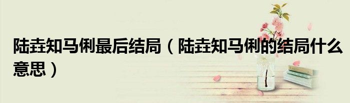 大家好,小夏来为大家讲解下。陆垚知马俐最后结局,陆垚知马俐的结局什么意思很多人还不知道,现在让我们一起来看看吧!