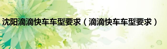 关于沈阳滴滴快车车型要求,滴滴快车车型要求这个很多人还不知道,今天菲菲来为大家解答以上的问题,现在让我们一起来看看吧!
