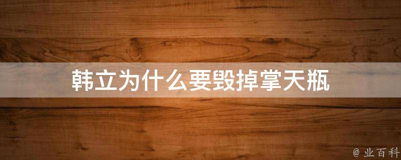 韩立要毁掉掌天瓶是为了逃脱天道的同化之力。在《凡人修仙传》中,每一个修士如果有幸成为道祖,那么他们无时无刻都要对付天道对他们的同化。自己身体力量最强的时候自然不需要惧怕,然而一旦自己的力量减弱。那么就很容易被天道所同化,则轮回道祖韩立就是这种情况。