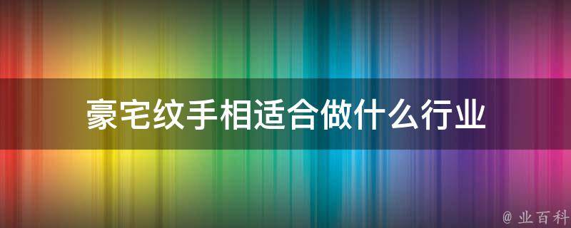 豪宅纹手相适合做行业经营、贸易公司等。豪宅纹位于无名指的下方,在天纹线的上方,有一个三角形的手纹,这个在手相学上叫金房子。有这种纹线的人,肯定会赚亿万家财,各个领域都有财进,适合做行业经营、贸易公司等。