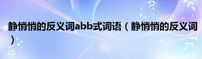 大家好,我是小科,我来为大家解答以上问题。静悄悄的反义词abb式词语,静悄悄的反义词很多人还不知道,现在让我们一起来看看吧!