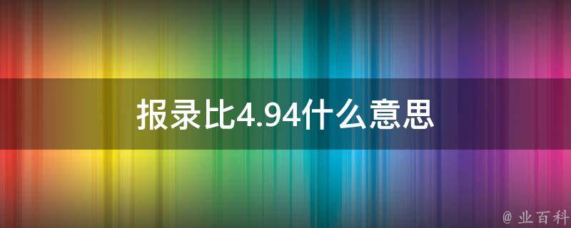 报录比4.94意思是:录取人数与报名人数的比值为4.94%。录取人数除以报考人数就是该专业报录比。一般来讲,如果报录比大于1,就说明报考的人数比录取的人数多。同理,如果报录比小于1,就说明报考的人数比录取的人数少。