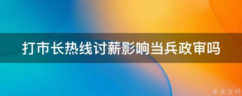 打市长热线讨薪不影响当兵政审,除非有案底,或者报考的单位或部门对家人的身份要求很高。法律依据:《公安机关录用人民警察考核和政审工作暂行规定》第四条,考核和政审的内容包括政治思想表现、道德品质、工作能力、工作实绩、缺点和不足、回避的关系以及直系血亲和对本人有重大影响旁系血亲的情况等。