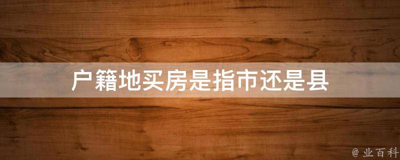 户籍地买房既指市,也指县。户籍地买房是指本市(县)域范围内的户口。户籍所在地,按照户口登记管理条例,公民填写户籍所在地,应该填写到户籍管理机关所在地,即城市户口的应该填某某省某市(县)某区,农村户口的应该填某某省某县某乡。户籍所在地是指我国居民户口簿登记所在地,一般是指出生时其父母户口登记地方,通常是家庭户口簿上的户口所在地。