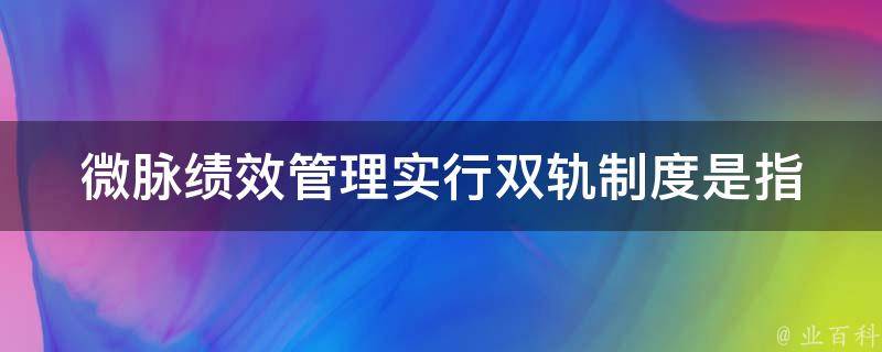 微脉绩效管理的双轨制度是指员工绩效和组织绩效两套不同的考核体系。对于员工绩效,微脉通常采用平衡计分卡和关键绩效指标相结合的方法进行考核。对于组织绩效,微脉采用了基于战略的组织绩效考核体系,以战略目标为起点,通过将战略目标分解为部门、团队和个人的目标,形成一套完整的组织绩效管理体系。