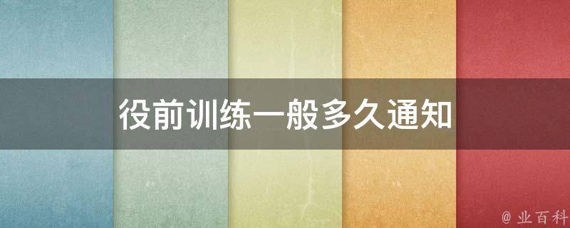 役前训练一般十天内通知。役前训练是由当地县(区)一级的人武部,对符合条件和要求的参军入伍人员,进行统一组织和安排的军事训练。根据当事人居住地,进行逐一通知,一般情况下,会在训练前通过电话等方式进行通知,可以让当事人提前做好相关准备。