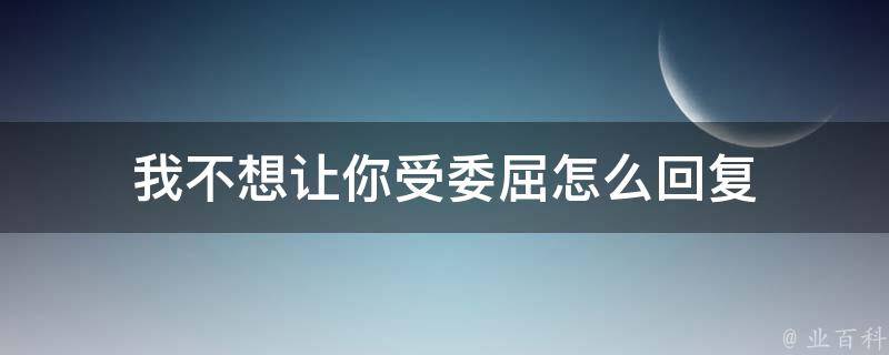 我不想让你受委屈可以回复:既然不想我受委屈,就应该拿出自己最诚信的一面,给我生活中的关爱,对方说不想让你受委屈的时候说明内心上是出于对你一种非常喜欢和呵护的感觉,此时你应该主动的向对方表达自己的真实心意,只有彼此双方做到互相的了解,彼此间的性格才能够和谐的相处,两个人之间的感情也能够更加的稳定。