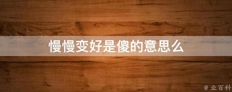 慢慢变好不是傻的意思。慢慢变好的意思是日子越过越好。再困难的事情都会好起来,没有必要因为生活的困难而退缩,体现了一个人乐观、积极、向上的态度和正确的为人处事价值观念。这也是我们每个人都应该拥有的心态。