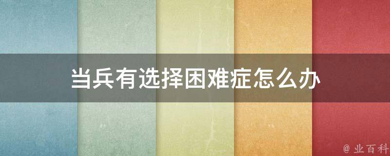 当兵有选择困难症,首先要明确自己的目标和需求,有助于过滤掉与目标无关的选项。为了做出明智的选择,需要收集尽量多的相关信息,包括各个选项的优缺点、适用人群、可能带来的影响等。在情感层面上,评估每个选项可能带来的结果,对比不同选项之间的优劣,权衡各种因素,选择一个符合自己需求和价值观的方案。为选择制定一个合理的时间限制,在规定的时间内决定好。
