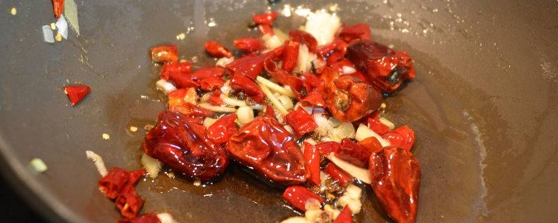 干辣椒炝锅的作用是增香,利用热油激发出调料的香味,来增加菜肴的香味,或是去除异味。不同的食材,炝锅的调料也不一样。炒土豆、青菜等蔬菜时,主要用葱、蒜、干辣椒、花椒等调料来炝锅,这样能增加香味,也不会破坏原有的鲜美。炒禽肉、畜肉、海鲜等肉类时,用生姜,以及花椒、八角等香料来炝锅,有很好的去腥效果,做出来的肉才香,味道鲜美。