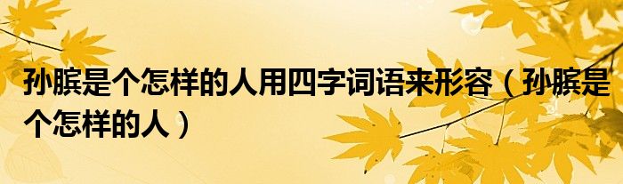 大家好,小华来为大家解答以上的问题。孙膑是个怎样的人用四字词语来形容,孙膑是个怎样的人这个很多人还不知道,现在让我们一起来看看吧!